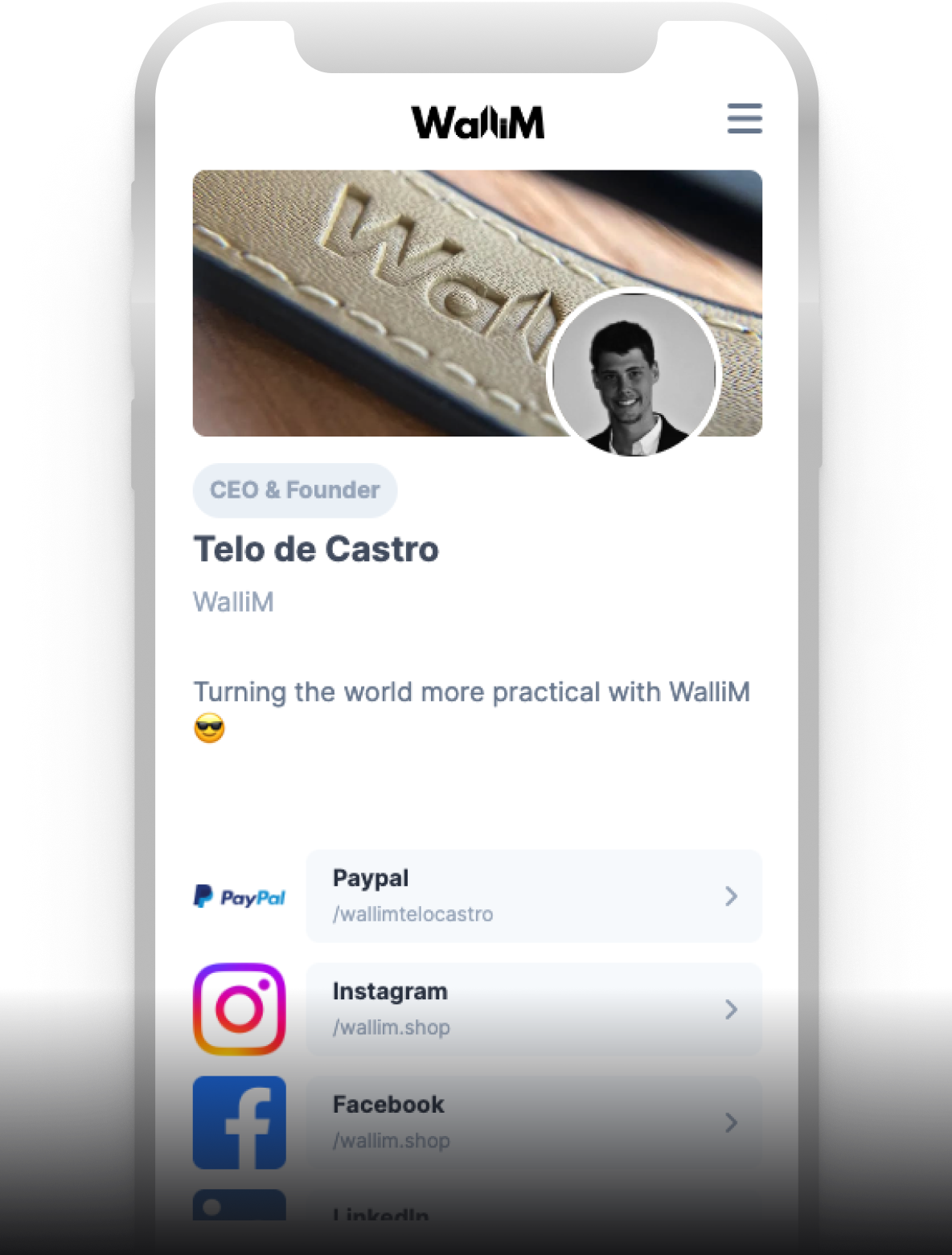 Of course! With our app, you can update the information of the profiles associated with your WalliM Card in real-time. Now with the same business card that will always be up to date.